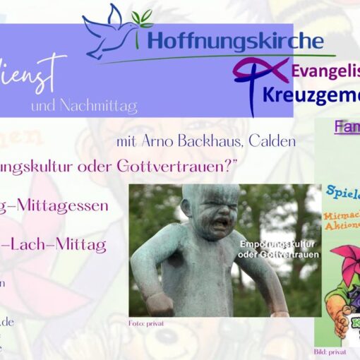 Sonntag, 22. Oktober – 10:00 Uhr „Lachen oder Vertrauen?“ 1. Mose 18, 1-15 mit Pastor Steffen Kahl anschließend Kirchen-Café Kreuzgemeinde Bremen Hohenlohestr. […]